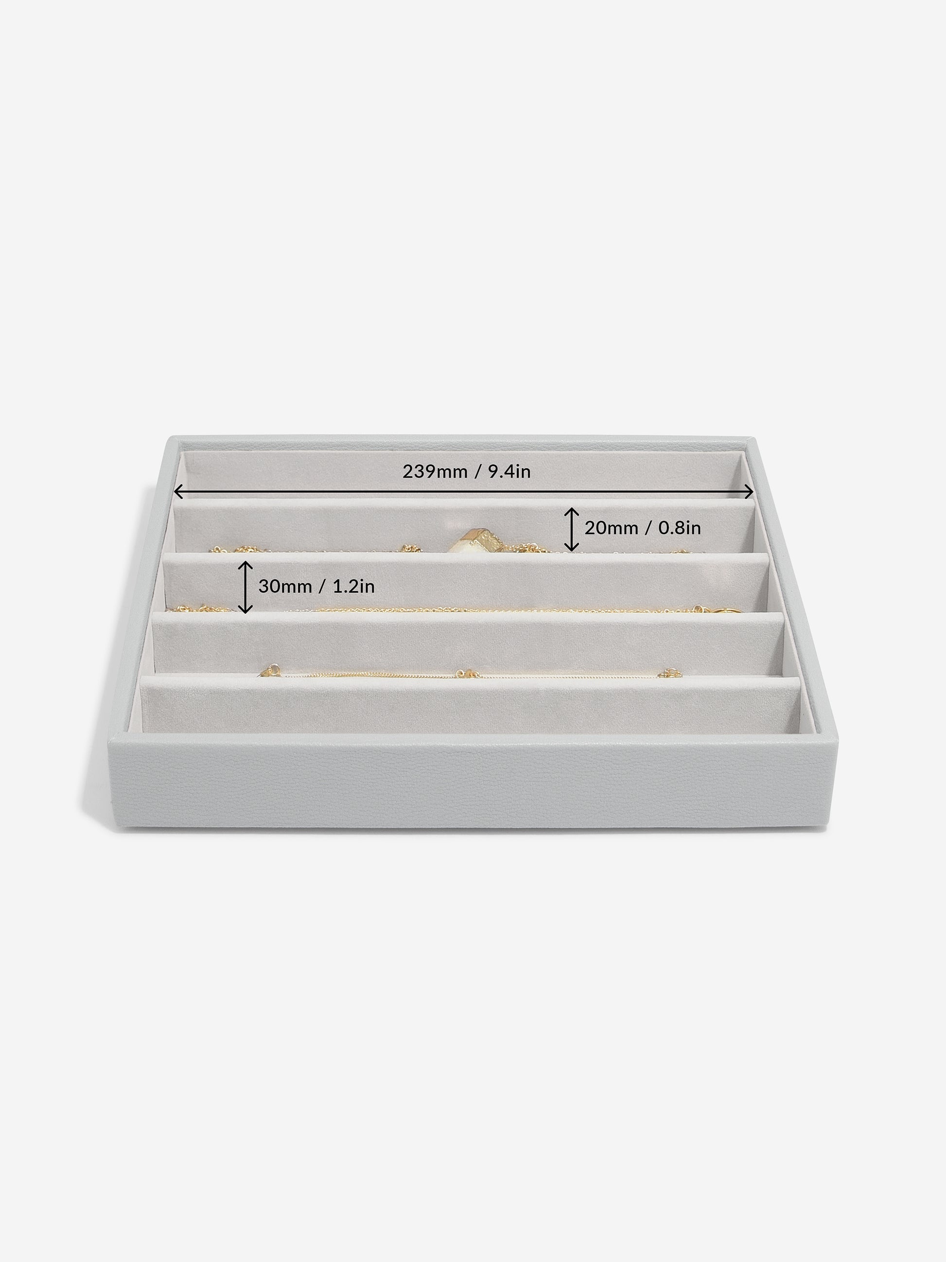 The Necklace Layer is multi-section layer, with long slim sections designed to keep necklaces tangle-free. Add this layer to your Stackers jewellery box or use as stand-alone storage on a dresser or in a drawer.