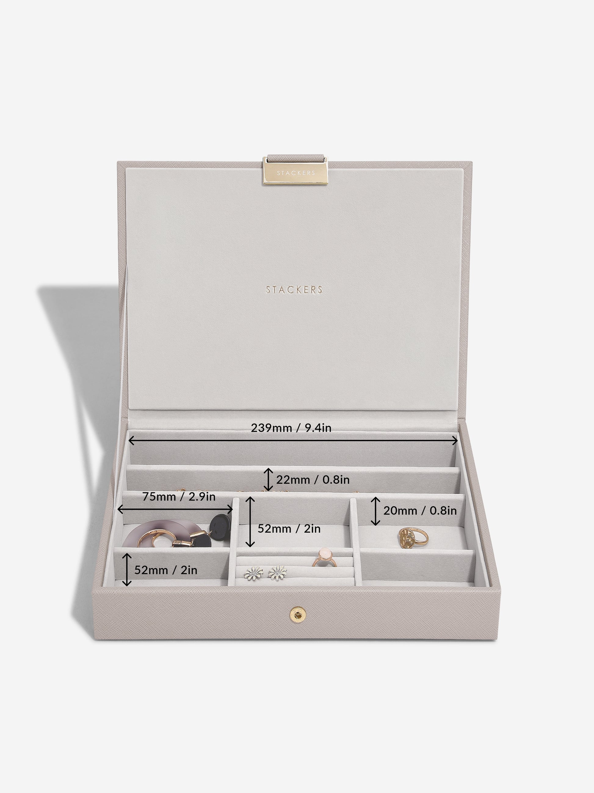 The Classic Jewellery Box Lid is the perfect starting point to your Stackers jewellery box or to use as a stand-alone piece on your dresser. Our unique stackable jewellery boxes are cleverly designed so you can create your own, by choosing which layers and accessories best suit your jewellery collection.