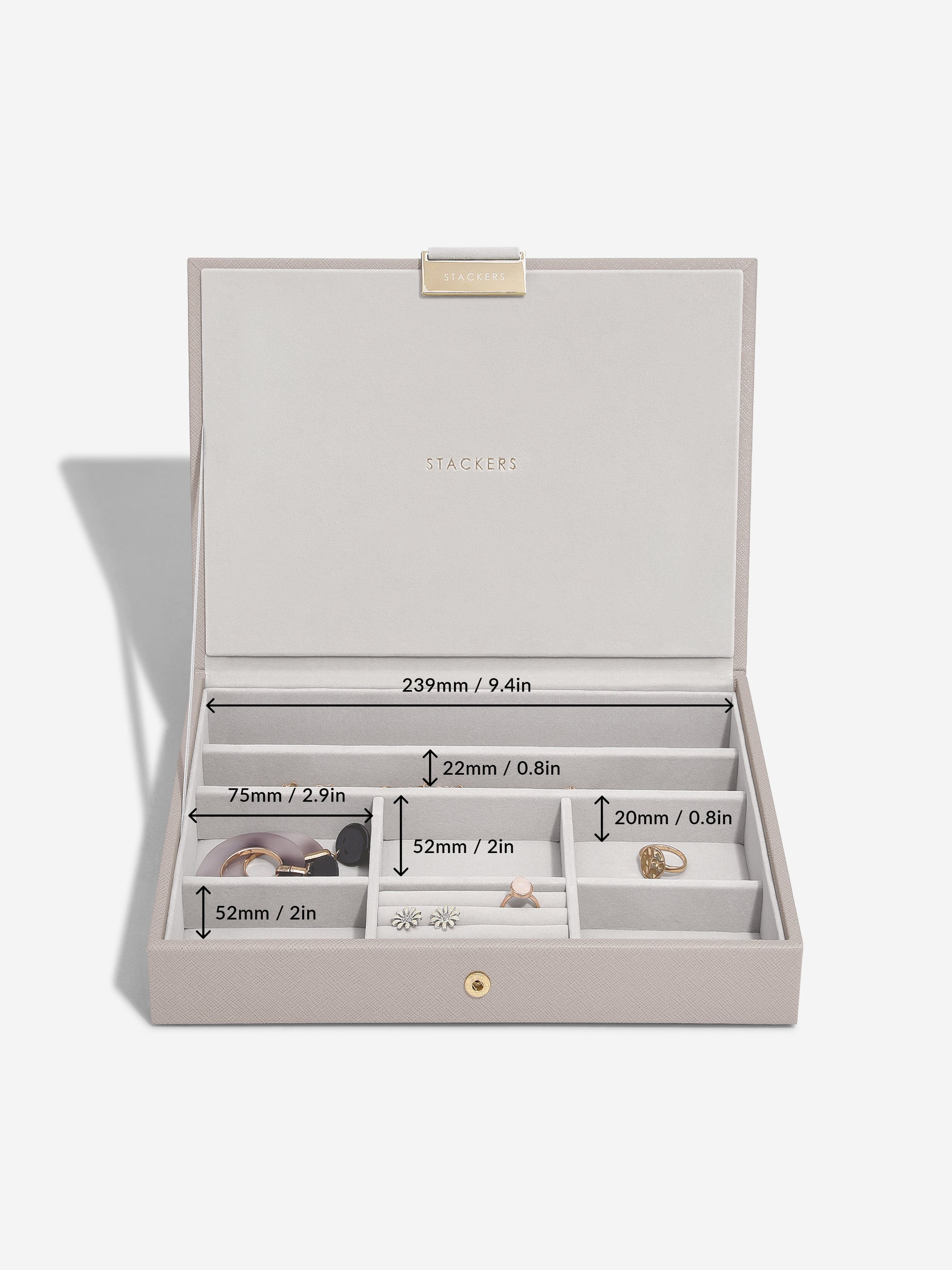The Classic Jewellery Box Lid is the perfect starting point to your Stackers jewellery box or to use as a stand-alone piece on your dresser. Our unique stackable jewellery boxes are cleverly designed so you can create your own, by choosing which layers and accessories best suit your jewellery collection.